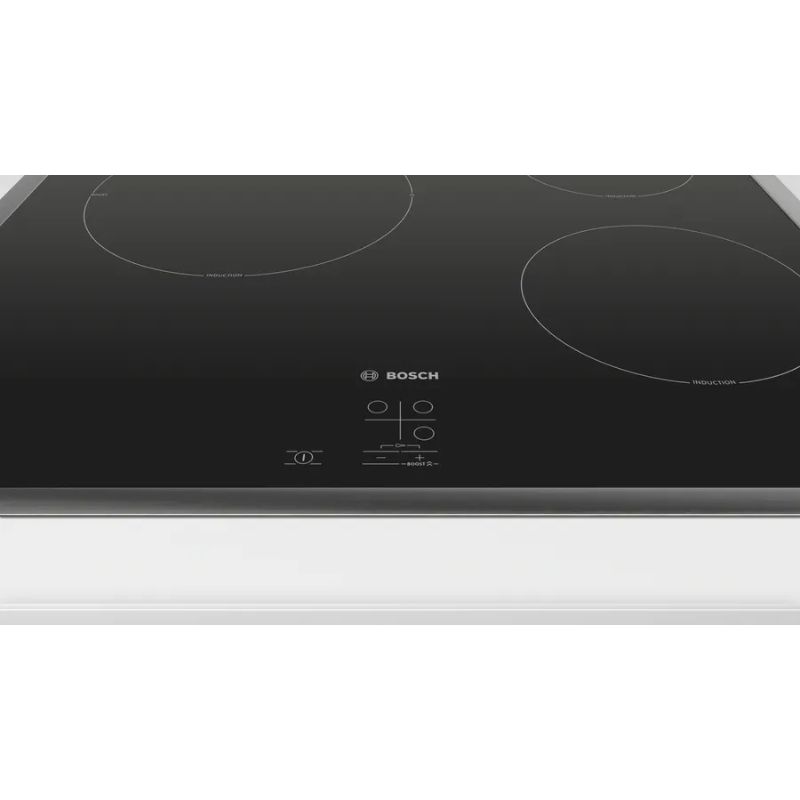 Bếp từ 3 vùng nấu Bosch PUC64RAA5E – thiết kế hiện đại với mặt kính đen sang trọng, 3 vùng nấu linh hoạt, điều khiển cảm ứng nhạy bén, nấu nhanh và tiết kiệm điện, tích hợp các tính năng an toàn như khóa trẻ em và cảnh báo nhiệt dư, phù hợp cho mọi không gian bếp hiện đại.