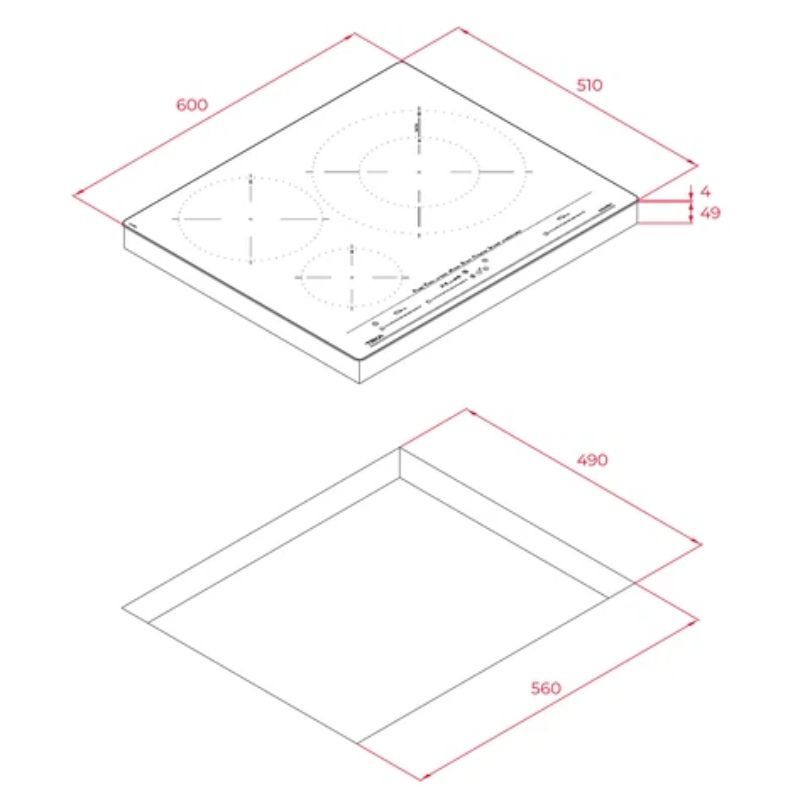| Kích thước mặt lắp âm | W560 mm x D490 mm |