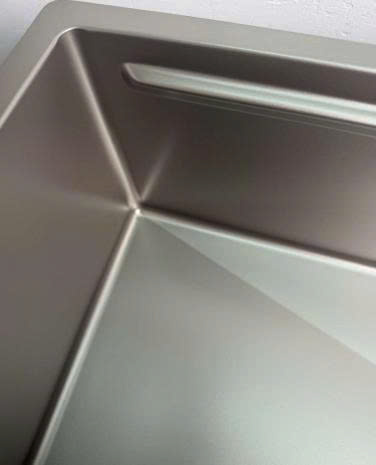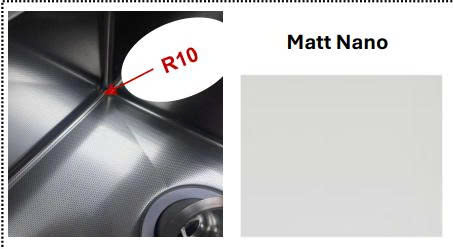 Góc bo R10 chuẩn mực: Thiết kế góc R10 là "tỷ lệ vàng" trong thiết kế chậu rửa. Nó vừa giữ được vẻ đẹp vuông vức, nam tính của phong cách hiện đại, vừa giúp người dùng dễ dàng vệ sinh sạch sẽ các góc cạnh, không để lại cặn bẩn.