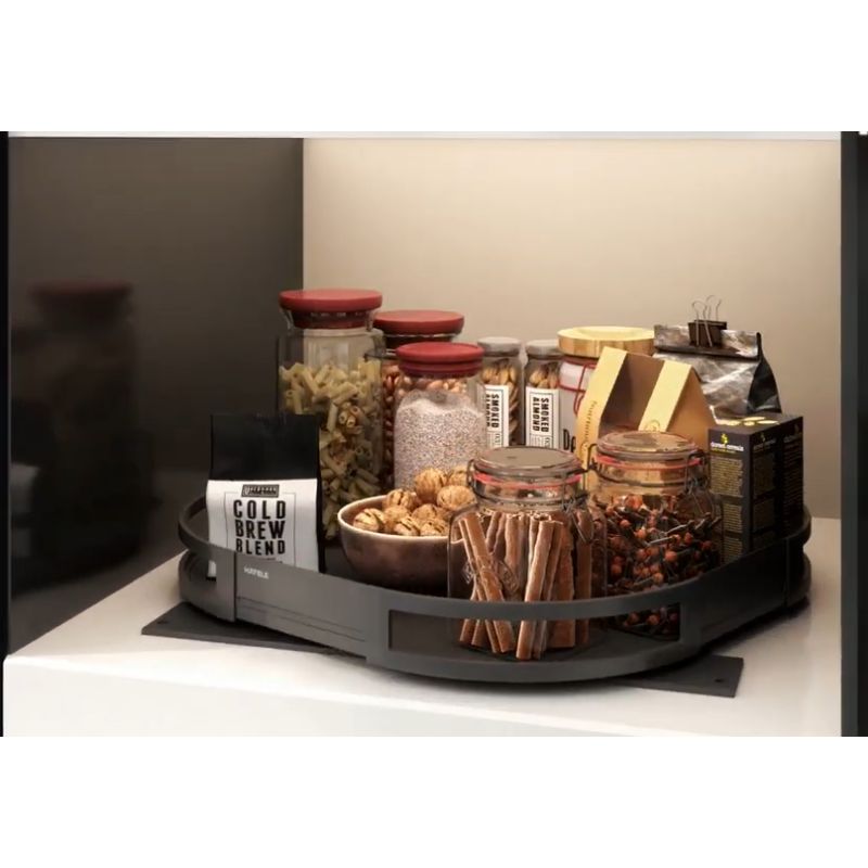 Kệ xoay TurnMotion Hafele 545.14.338 được thiết kế nhằm tối ưu không gian lưu trữ trong tủ bếp dưới, đặc biệt là các khu vực sâu và khó tiếp cận. Sản phẩm mang phong cách thiết kế châu Âu hiện đại, giúp việc sắp xếp và lấy đồ dùng trở nên thuận tiện hơn, đồng thời tạo điểm nhấn tinh tế cho không gian bếp gia đình.