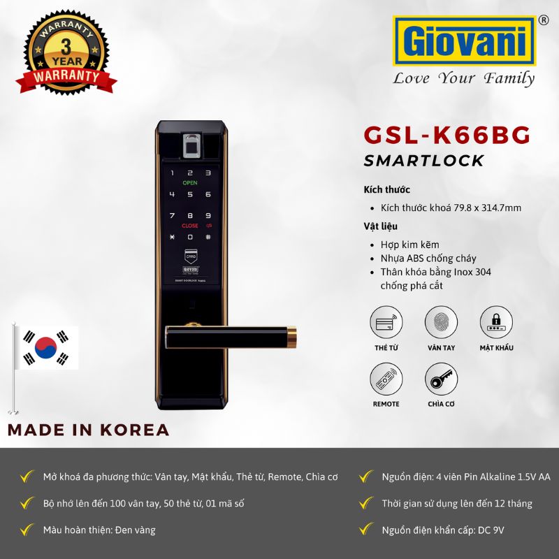 KHÓA CỬA ĐIỆN TỬ THÔNG MINH GIOVANI GSL K66FG