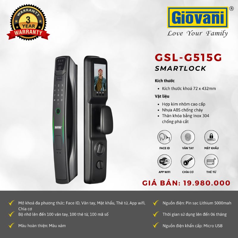 | Danh mục | : Khóa điện tử thông minh Giovani |