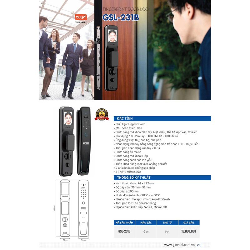 | Danh mục | : Khóa điện tử thông minh Giovani |