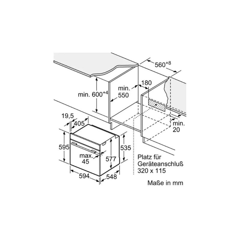 - Kích thước nhỏ gọn 595 x 594 x 548 mm của lò nướng Bosch HBG7741B1 đem đến sự thuận tiện cho việc lắp đặt, mang lại sự tiện nghi cho căn bếp của bạn.