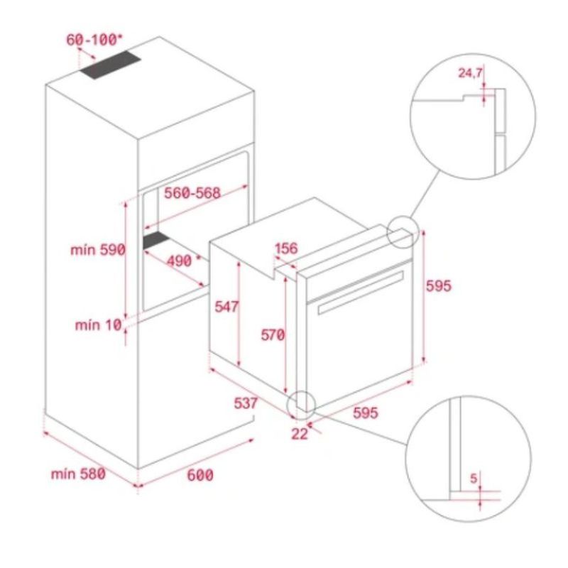 | Kích thước tổng thể (Cao × Rộng × Sâu) | 595 × 595 × (537 + 22) mm |