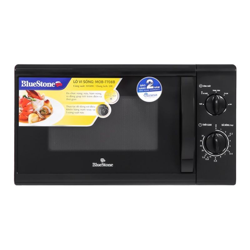 Lò vi sóng BlueStone MOB-7708B với dung tích 20 lít và công suất 1050W là lựa chọn lý tưởng cho gia đình nhỏ hoặc không gian bếp hiện đại. Sản phẩm có thiết kế sang trọng, bảng điều khiển cơ tiếng Việt thân thiện, giúp việc nấu, hâm nóng và rã đông thực phẩm trở nên nhanh chóng, tiện lợi và dễ sử dụng cho mọi thành viên trong gia đình.