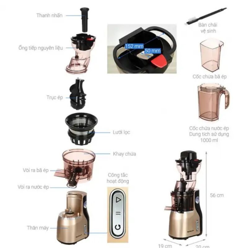 Công nghệ ép chậm hiện đại: Giúp giữ lại tới 98% dưỡng chất, giảm oxy hóa, bảo toàn hương vị tươi ngon lâu hơn.