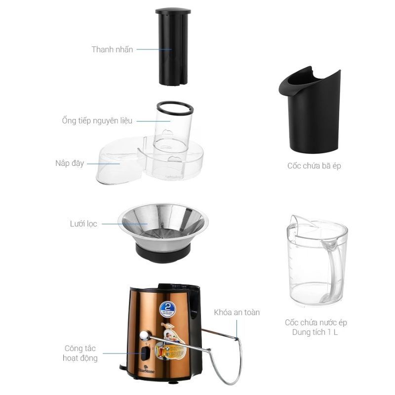 Ca chứa có bộ phận tách bọt: Mang đến ly nước ép tinh khiết, trọn vị tự nhiên.