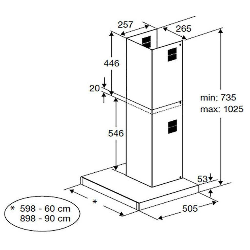 | Kích thước hút mùi |