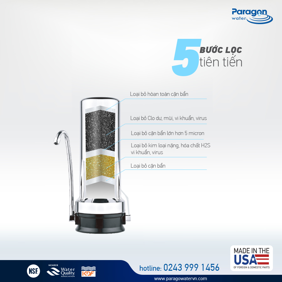 Máy lọc nước đặt bàn PARAGON P3200 UC – được nhập khẩu trực tiếp từ MỸ (MADE – IN – AMERICA) mang tới sự tiện nghi tối đa, cùng khả năng đảm bảo sức khỏe cho người dùng nhờ: