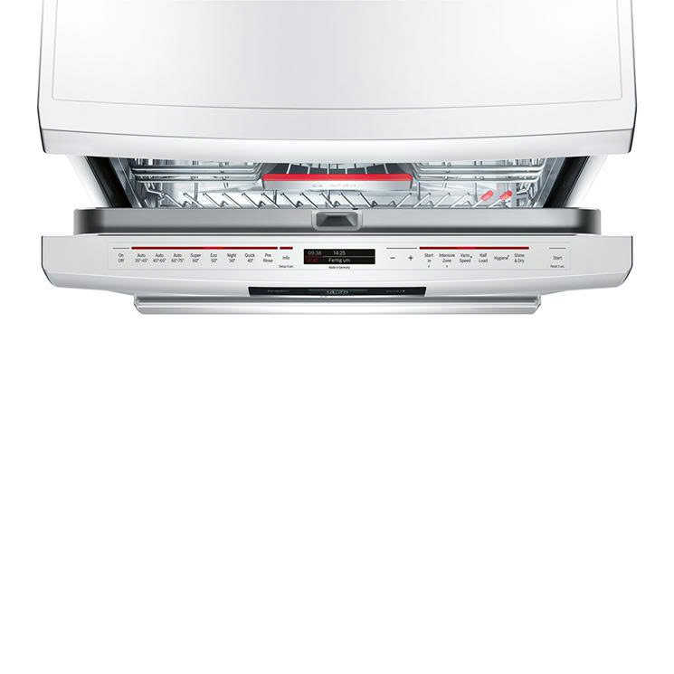 Khác biệt hoàn toàn với các dòng Serie 2, 4 hay 6 đời cũ, Bosch SMS88TW02M Serie 8 giấu bảng điều khiển cảm ứng TouchControl ở ngay mép trên cánh cửa. Khi đóng cửa, bảng điều khiển này sẽ ẩn đi, tạo nên một mặt phẳng liền mạch sang trọng.