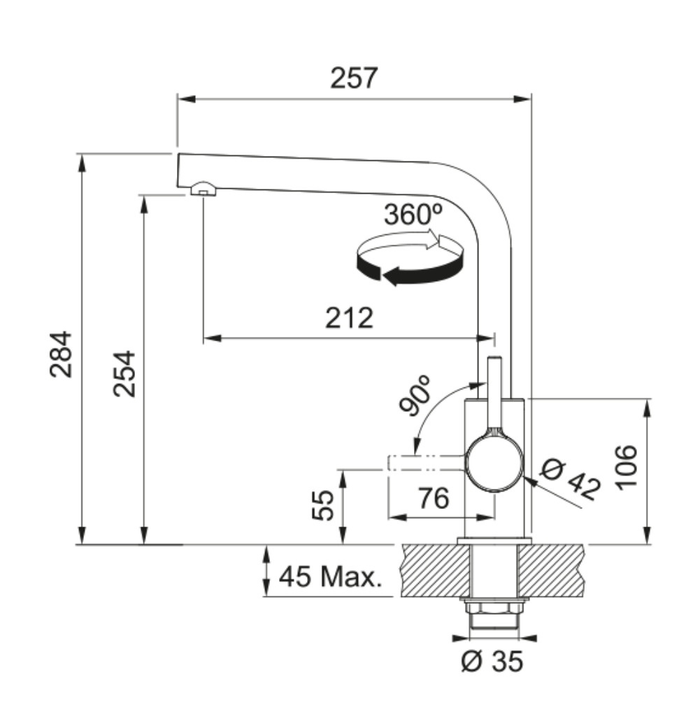 Vòi có khả năng xoay 360°, cho phép điều hướng dòng nước đến mọi vị trí trong chậu rửa. Tính năng này đặc biệt tiện lợi khi sử dụng với chậu đôi hoặc không gian bếp rộng.