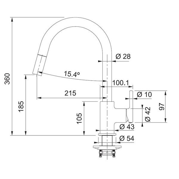 Tầm với vòi: 215 mm